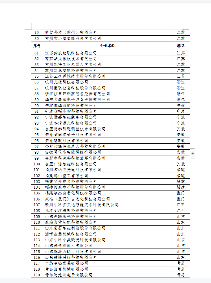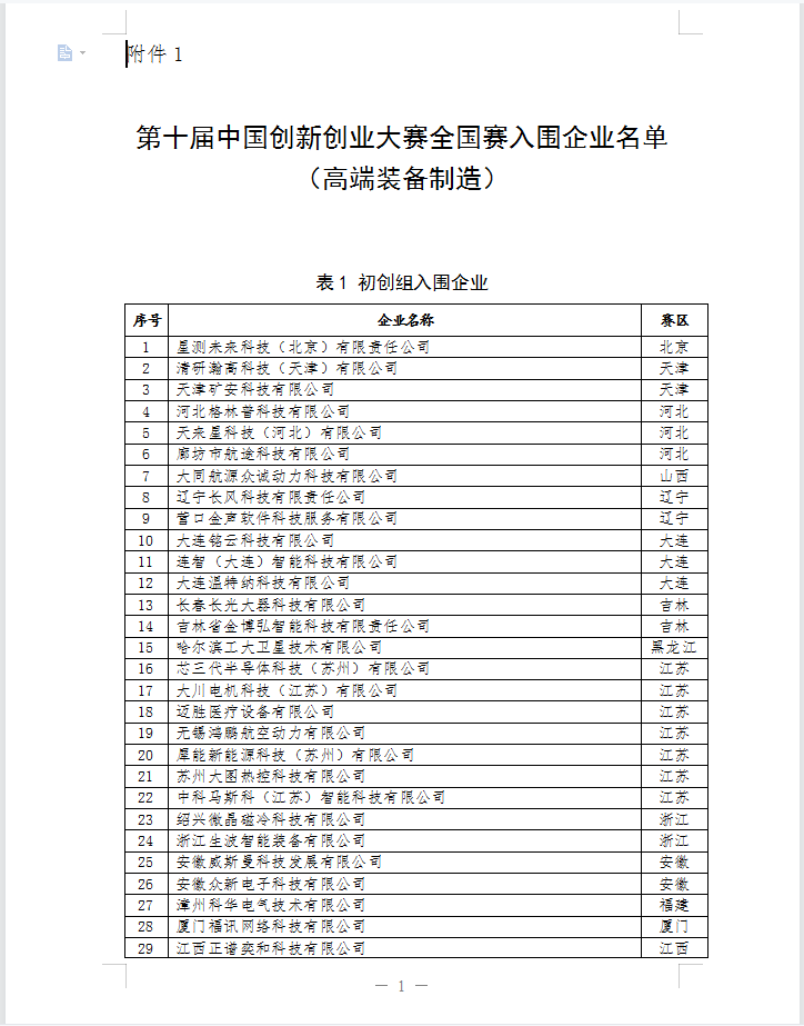 第十届中国创新创业大赛全国赛入围企业名单(高端装备制造)