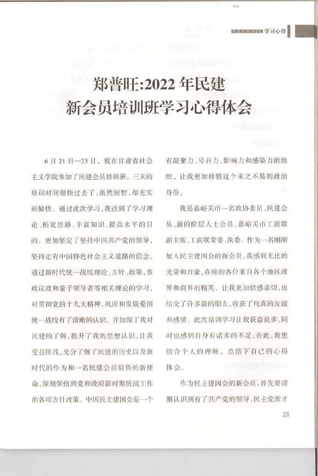 郑普旺:2022年民建新会员培训班心得体会